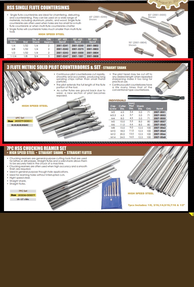 M8X9MM HSS 3FL PILOT COUNTERBORE
